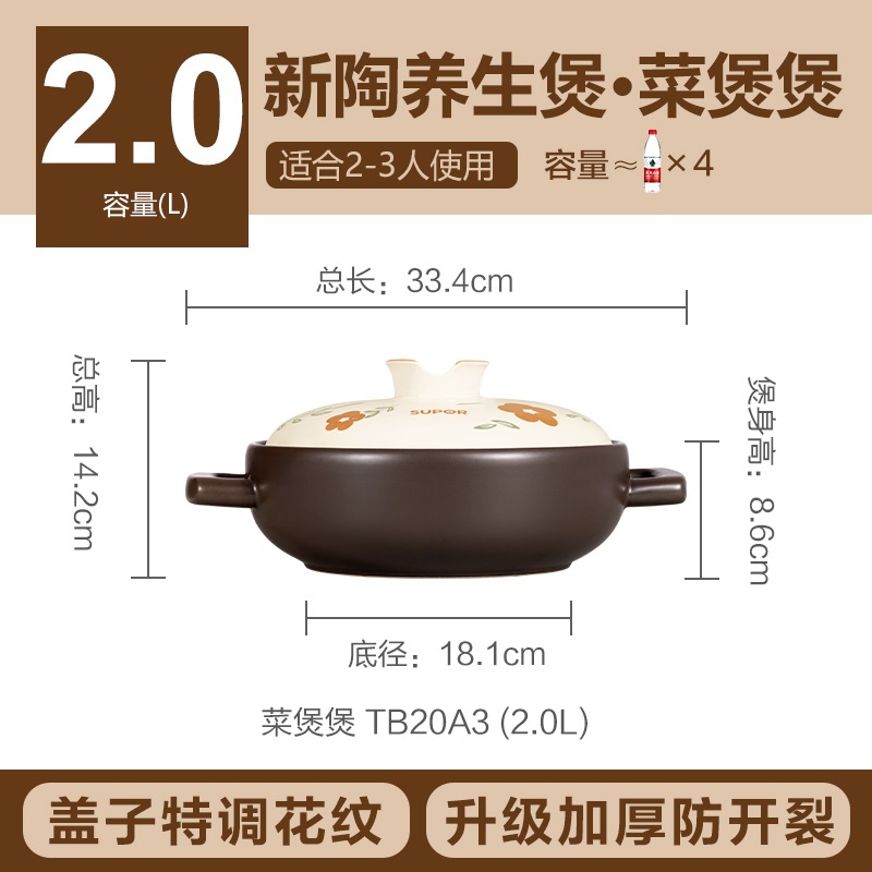 苏泊尔砂锅煲炖锅0.8L煲汤陶瓷煲石锅煲仔饭煤气灶专用TB08A3