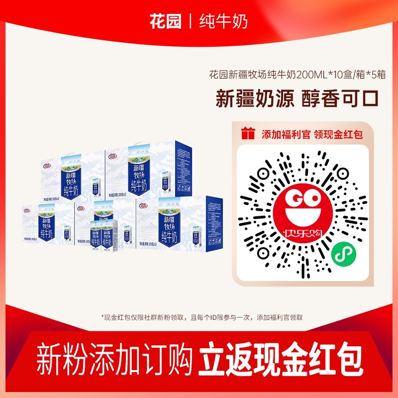花园新疆牧场纯牛奶200ml*10盒/箱