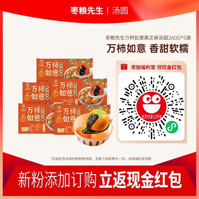【京东快递】枣粮先生大黄米汤圆400g*5袋 黑芝麻