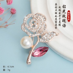 圣所轻奢时尚秋冬大衣丝巾气质百搭西装领胸针饰品 一枝玫瑰玫红