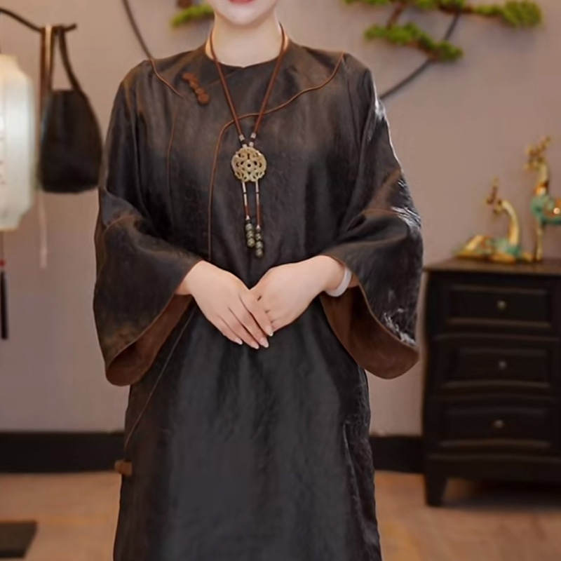 千奈莉全开襟手工盘扣本龟中式显瘦百搭斜襟旗袍26-1 本龟 L