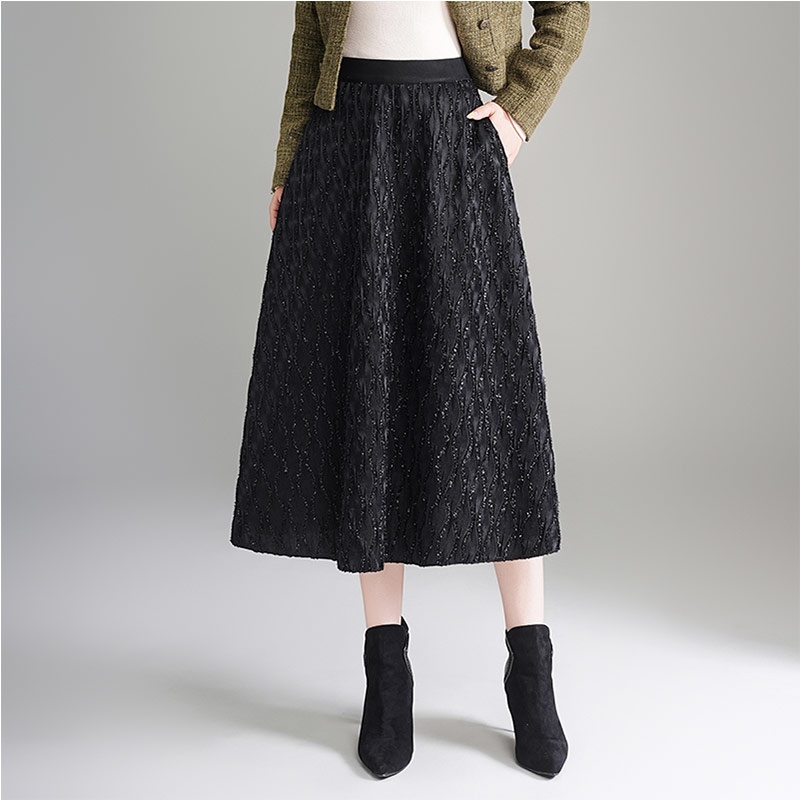 LuckyOzasec女士醋酸缎面半身裙SRS-9993 经典黑 M