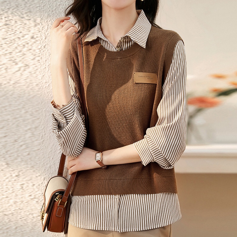柏黛莎秋冬新款针织女圆领落肩条纹宽松打底衫内搭毛衣韩版 黑色 均码