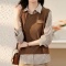 柏黛莎口袋减龄设计+休闲纯棉全棉短袖衬衫棉T女小上衣2025年夏季新款棉麻 棕色 S