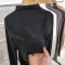 柏黛莎秋冬新款针织女圆领落肩条纹宽松打底衫内搭毛衣韩版 黑色 均码