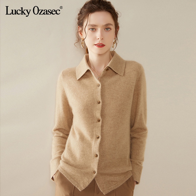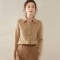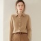丁摩短款宽松V领纯色系扣长袖针织开衫毛衣336 奶茶米 S
