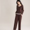 意丝涵春夏纯棉双层纱立领开衫套装女款560234 烟熏米 M