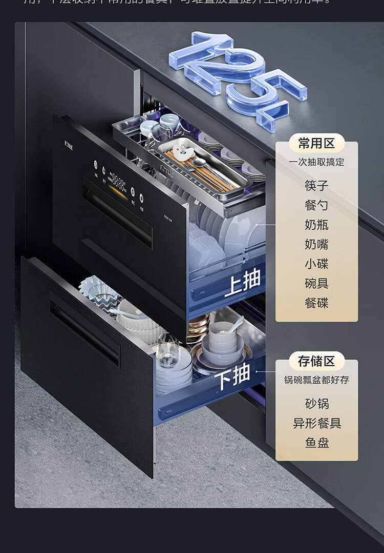 方太嵌入式消毒筷碗柜100L双层大容量ZTD100J-01-J51ES