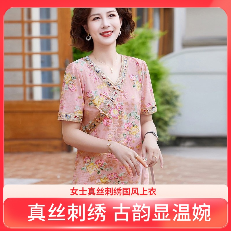LuckyOzasec女士92%真丝刺绣中式宽松连衣裙2517 花色 M
