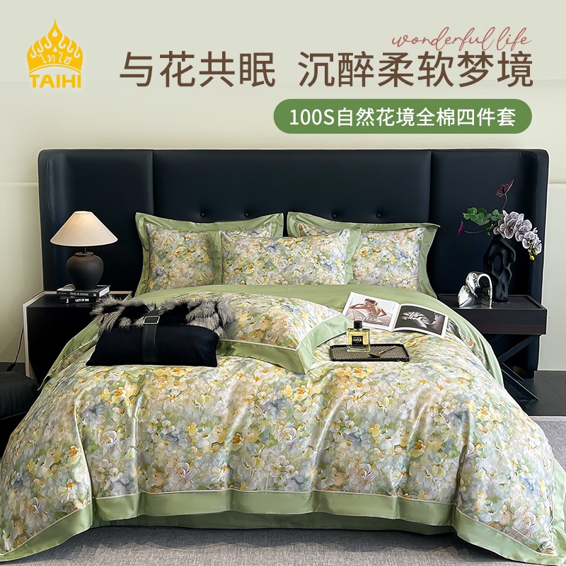 TAIHI泰嗨100支数码印花自然花镜纯棉四件套1.8米床 花开叠彩绿