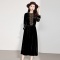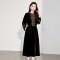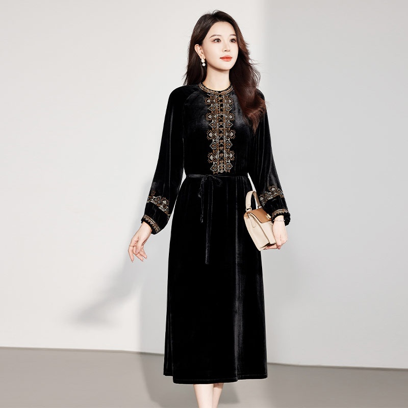 LuckyOzasec女士纯桑蚕丝植绒刺绣连衣裙6339LN 黑色 M