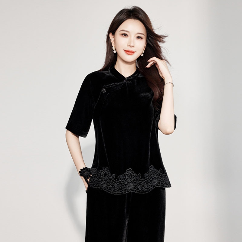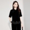 [织金缀绣 雅承东方]LuckyOzasec女士纯桑蚕丝植绒刺绣中式上衣6285LN 黑色 M