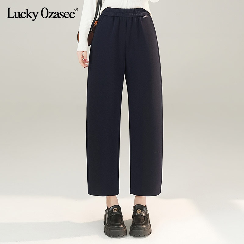LuckyOzasec女士春秋高腰微喇西装裤YMS-9338 黑色小个子 S