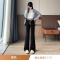 [微喇剪裁 修身显腿]LuckyOzasec女士针织仿羊绒微喇加绒长裤6850 黑色 S