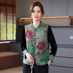 LuckyOzasec女士真丝植绒上衣+马甲两件装7561 绿色 XL