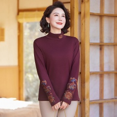 LuckyOzasec女士针织刺绣中式上衣25509 枣红 XL