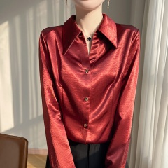 LuckyOzasec女士鎏金缎V领衬衫8225 红色 S