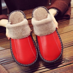 LuckyOzasec男女保暖头层牛皮防滑拖鞋NPMR 红色 25(34-35)