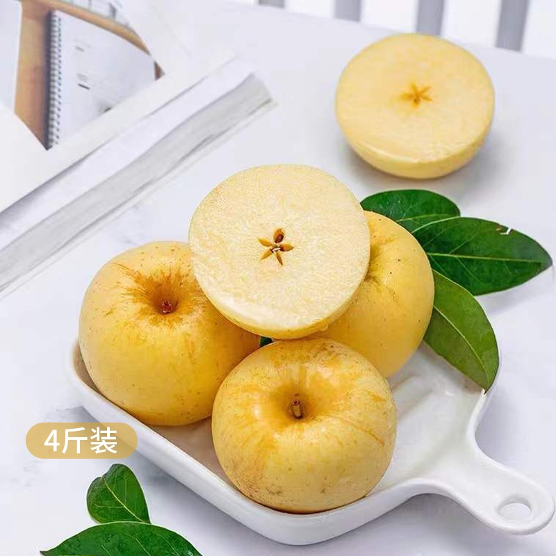 山东青森水蜜桃苹果净重4斤彩箱大果80mm+