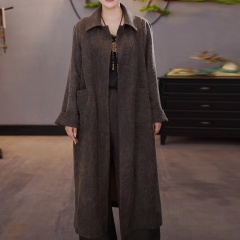 千奈莉100姆米柞蚕丝气质翻领香云纱风衣YJ269 陶土色 L