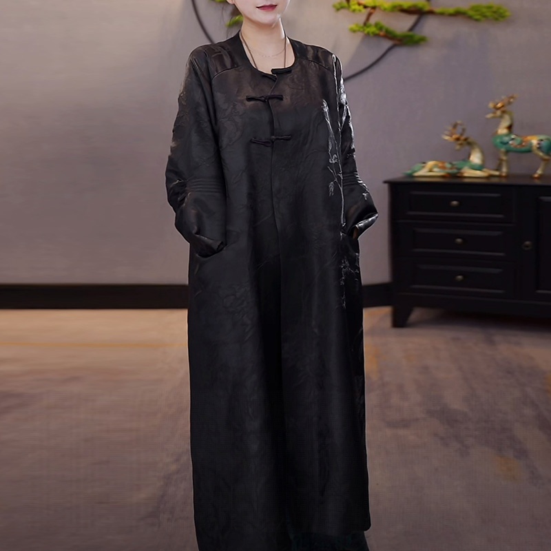 千奈莉油料老缎龟原本色长款百搭香云纱风衣22-23 黑缎龟 L