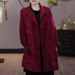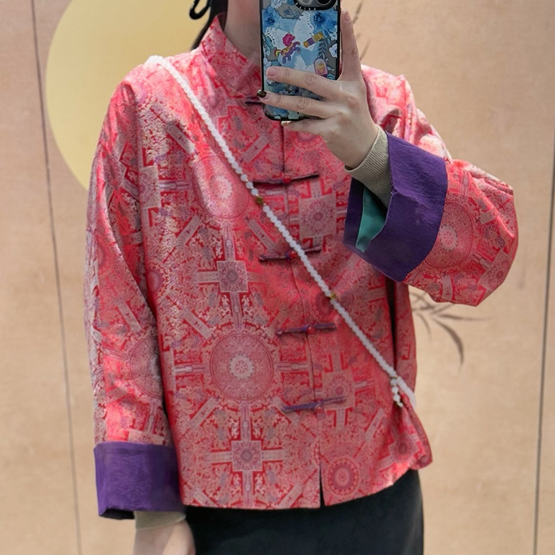 千奈莉新年红柞蚕丝花雕蚕丝填充香云纱棉服YJ057 红色 L