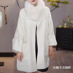 千奈莉饕餮纹蚕丝羊毛蚕丝填充香云纱棉外套YJ273 白色 L