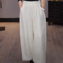 千奈莉饕餮纹蚕丝羊毛蚕丝填充香云纱花苞裤YJ023 白色 L