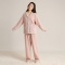 意丝涵秋冬加厚玉晶绒保暖V领开衫套装家居服女款560283 落樱粉 M
