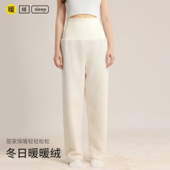 意丝涵秋冬加厚玉晶绒保暖高腰睡裤休闲裤家居裤可外穿女裤560281 牛乳白 M