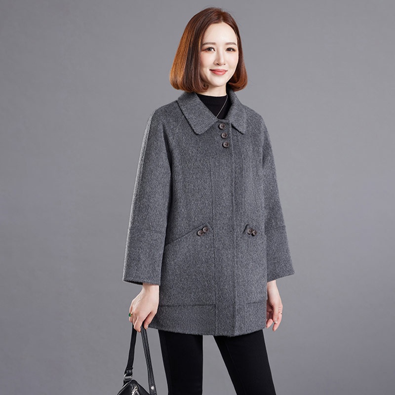 [大衣优雅 自在随性]LuckyOzasec女士100%羊毛宽松大衣外套5801 灰色 M