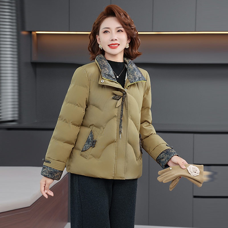 [盘扣设计 古典韵味]LuckyOzasec女士盘扣中式加绒棉服50814 黄色 XL