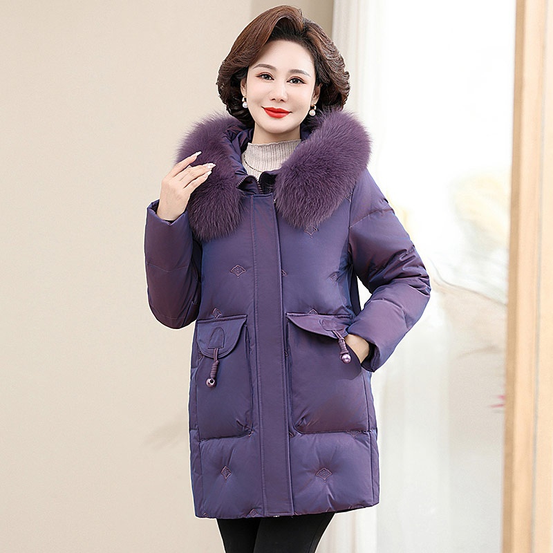 LuckyOzasec女士貂绒压花中式保暖外套A2471 紫色常规 XL