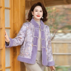 LuckyOzasec女士貂绒压花中式保暖外套A2471 紫色常规 XL