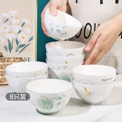 孟垣春景系列8个装4.5英寸家用陶瓷饭碗(3个花色随机)