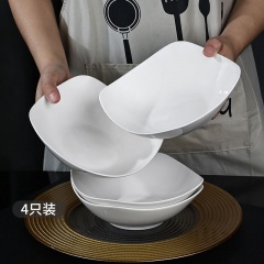 孟垣8英寸纯白家庭四角碗沙拉碗翘脚碗(4个装)