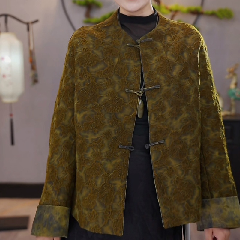 首页> 服装配饰> 女士服装> 千奈莉锦油绸桑蚕丝填充重缎香云纱棉服YJ275 姜黄色 L