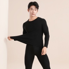 雪中飞貂绒蚕丝莱赛尔腈纶发热男女内衣保暖衣秋衣套装 男黑色 L