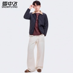 雪中飞防泼水可拆翻领100%复合羊毛内胆秋冬长袖轻薄内搭外套 男黑灰 L