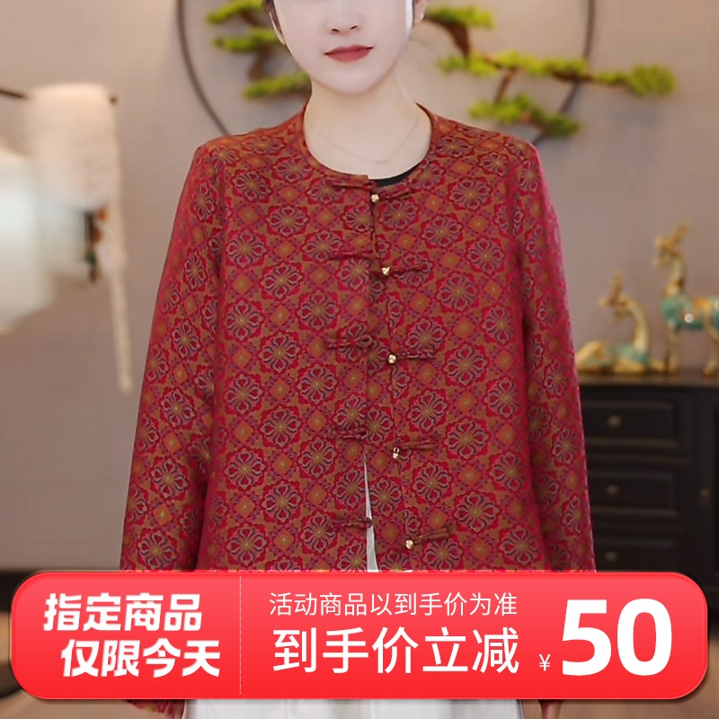 首页> 服装配饰> 女士服装> 千奈莉【100%桑蚕丝面料】大国锦绣新年国风宋锦香云纱外套 红色 L