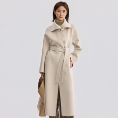 帕佳妮【10%骆马绒 90%绵羊毛】腰带颗粒骆马绒绵羊毛大衣85001 糯米白 S