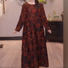 千奈莉珍藏版香花鸡血藤双面香云纱连衣裙23-40 红色 L
