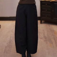 千奈莉锦油绸如意纹宽松显瘦调性香云纱花苞裤 黑色 L
