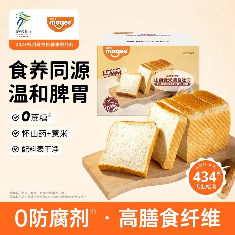 麦吉士零蔗糖高蛋白五零面包270g*1盒