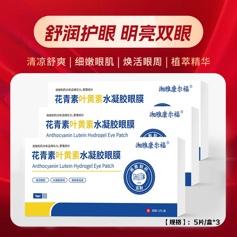 [缓疲助眠 护眼实力派]【湘雅制药监制】湘雅康尔福花青素叶黄素水凝胶眼膜5片/盒*3盒(共15片)