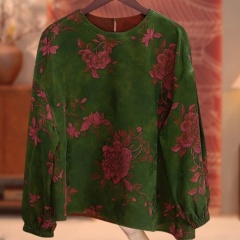 千奈莉重缎老料新中式双面穿香云纱上衣YJ298 粉绿芙蓉花 L