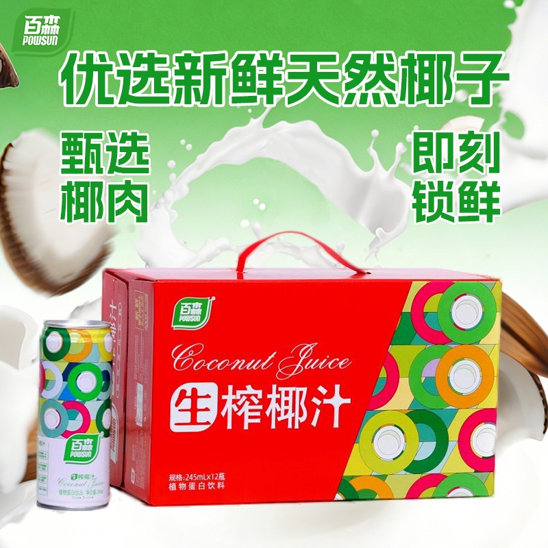 百森生榨椰汁植物蛋白椰汁饮料245ml*12罐整箱装