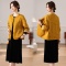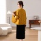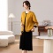 LuckyOzasec92%真丝丝绒连衣裙国风上衣套装3606 黄色 XL