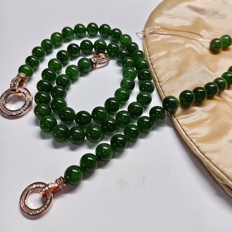太阳城时来运转翡翠绿新中式沙金项链 草莓粉晶 85cm