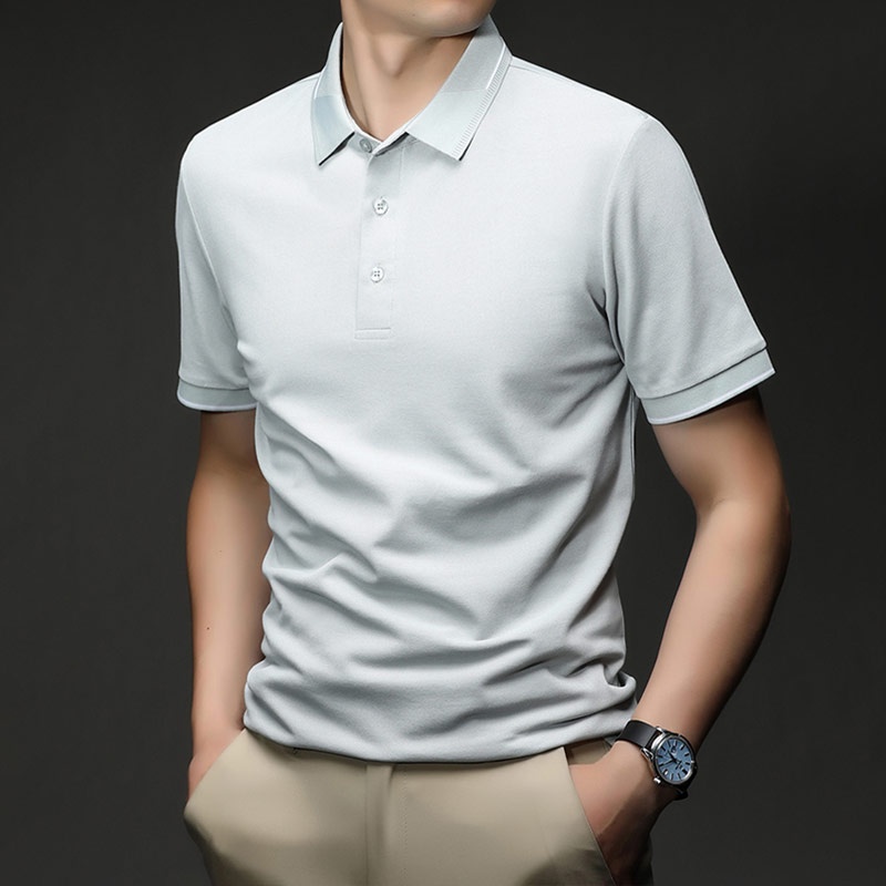[宽松舒适 时尚设计]LuckyOzasec亚麻桑蚕丝棉弹力男士POLO衫26166 云石灰 M